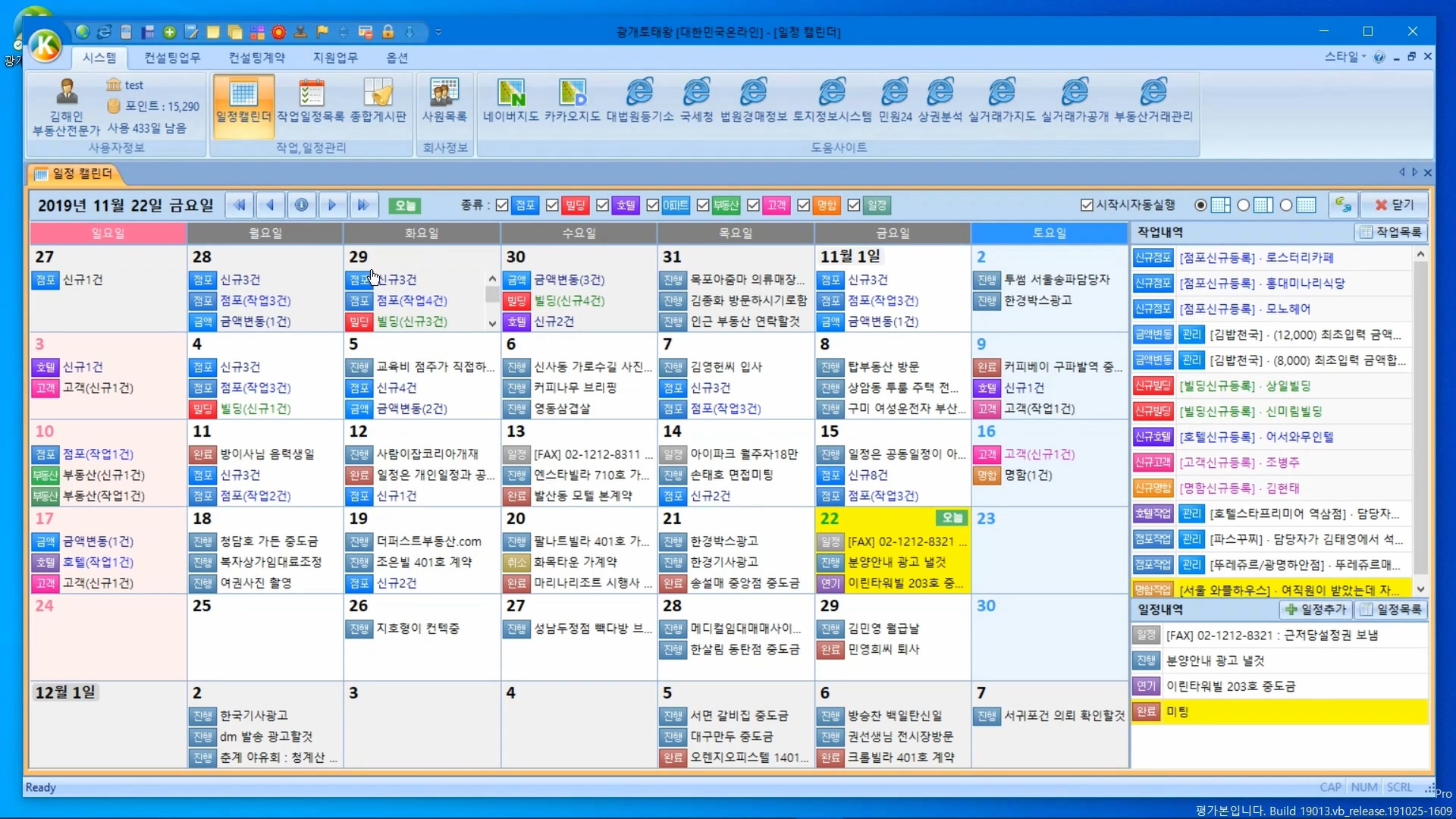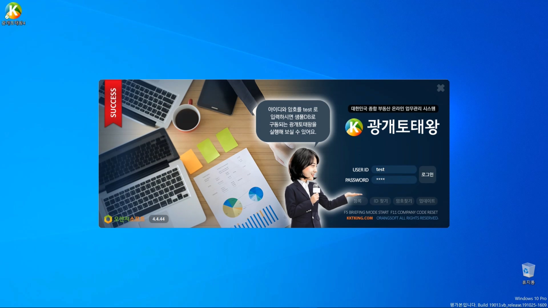 test 아이디로 로그인 하시면 물건자료, 고객자료, 명함자료 등이 미리 샘풀데이터로 입력 되어져 있어서 광개토태왕 사용에 도움을 줍니다.