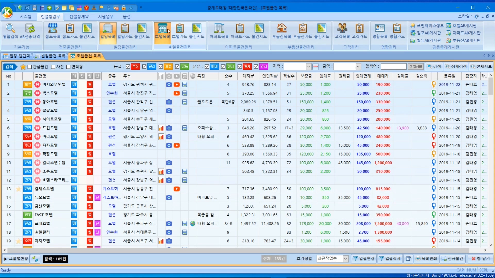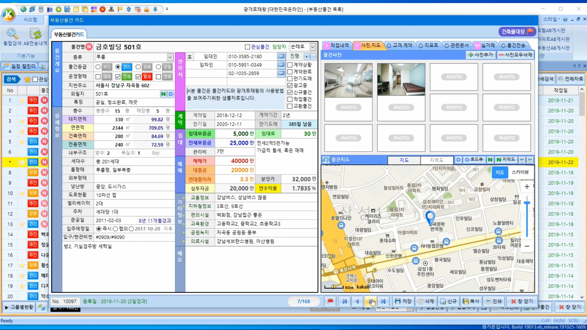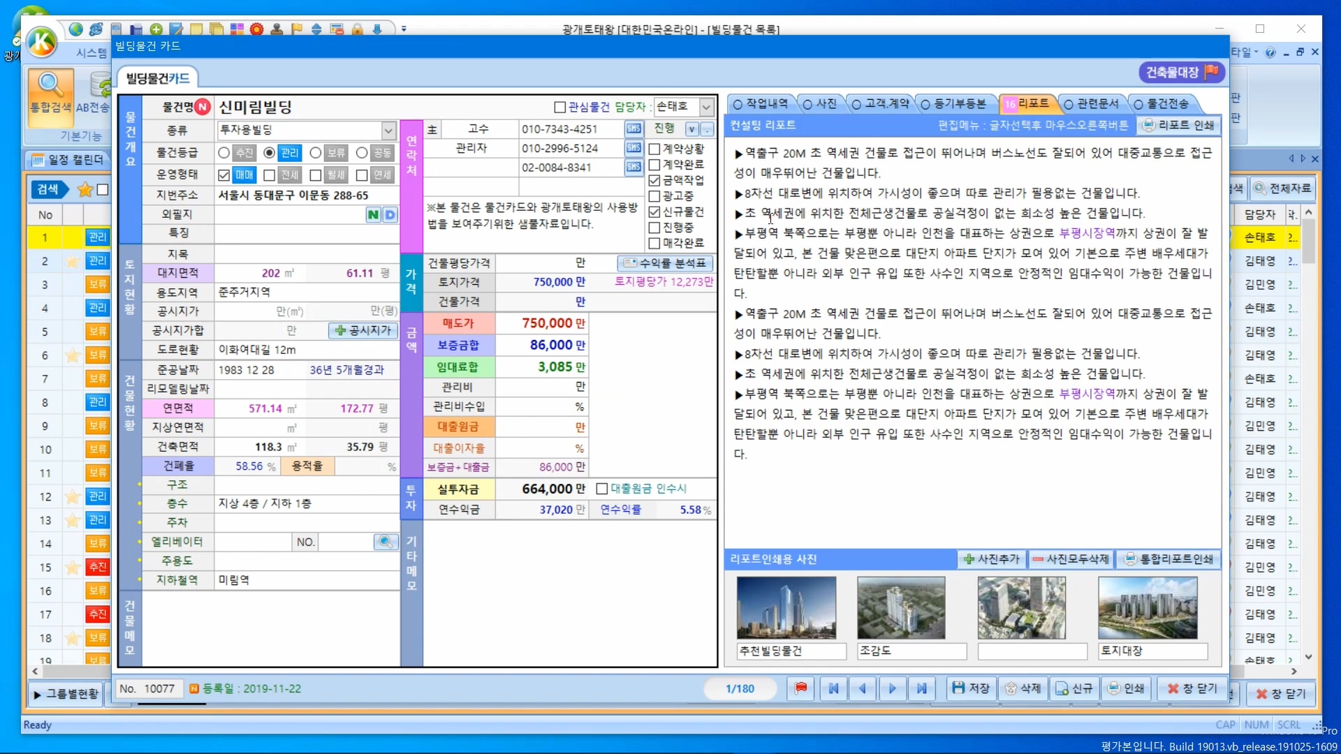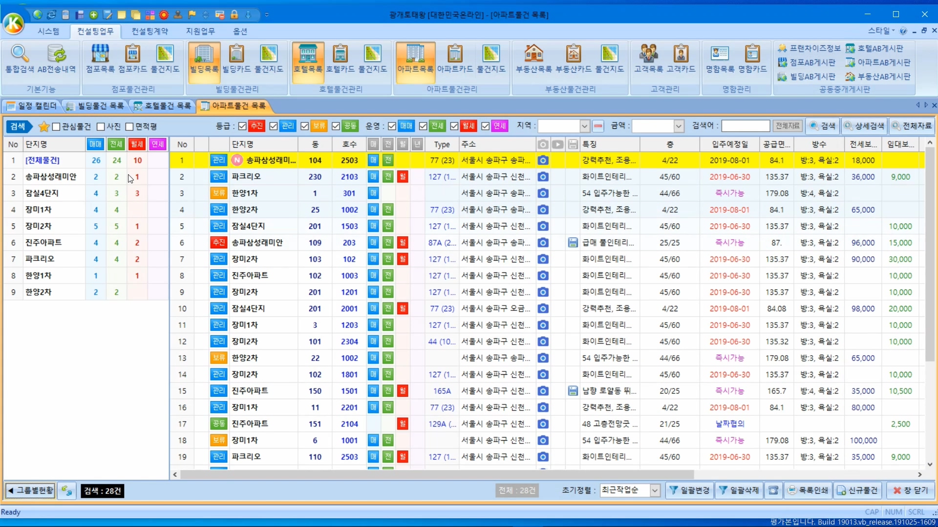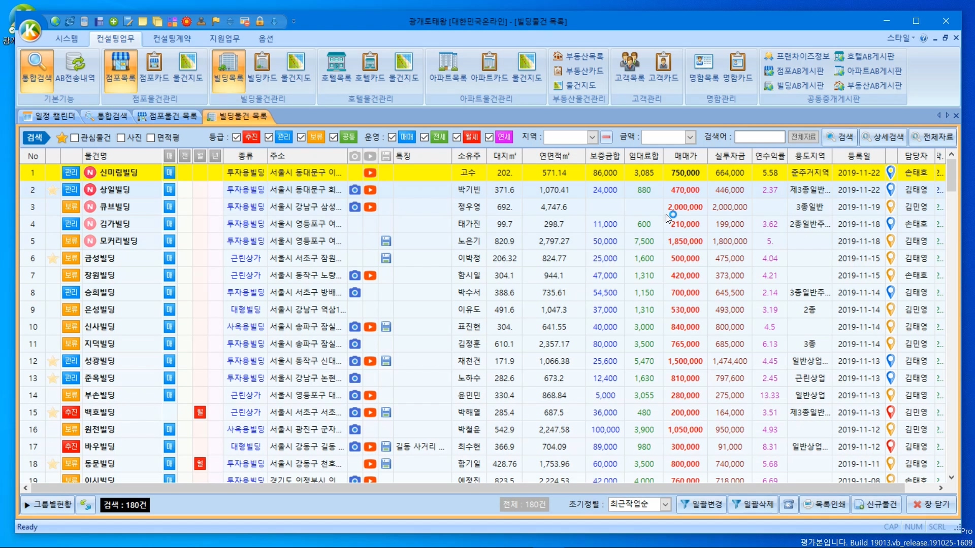 토지, 주택, 공장, 사무실등을 관리 할 수 있는 부동산물건 목록창