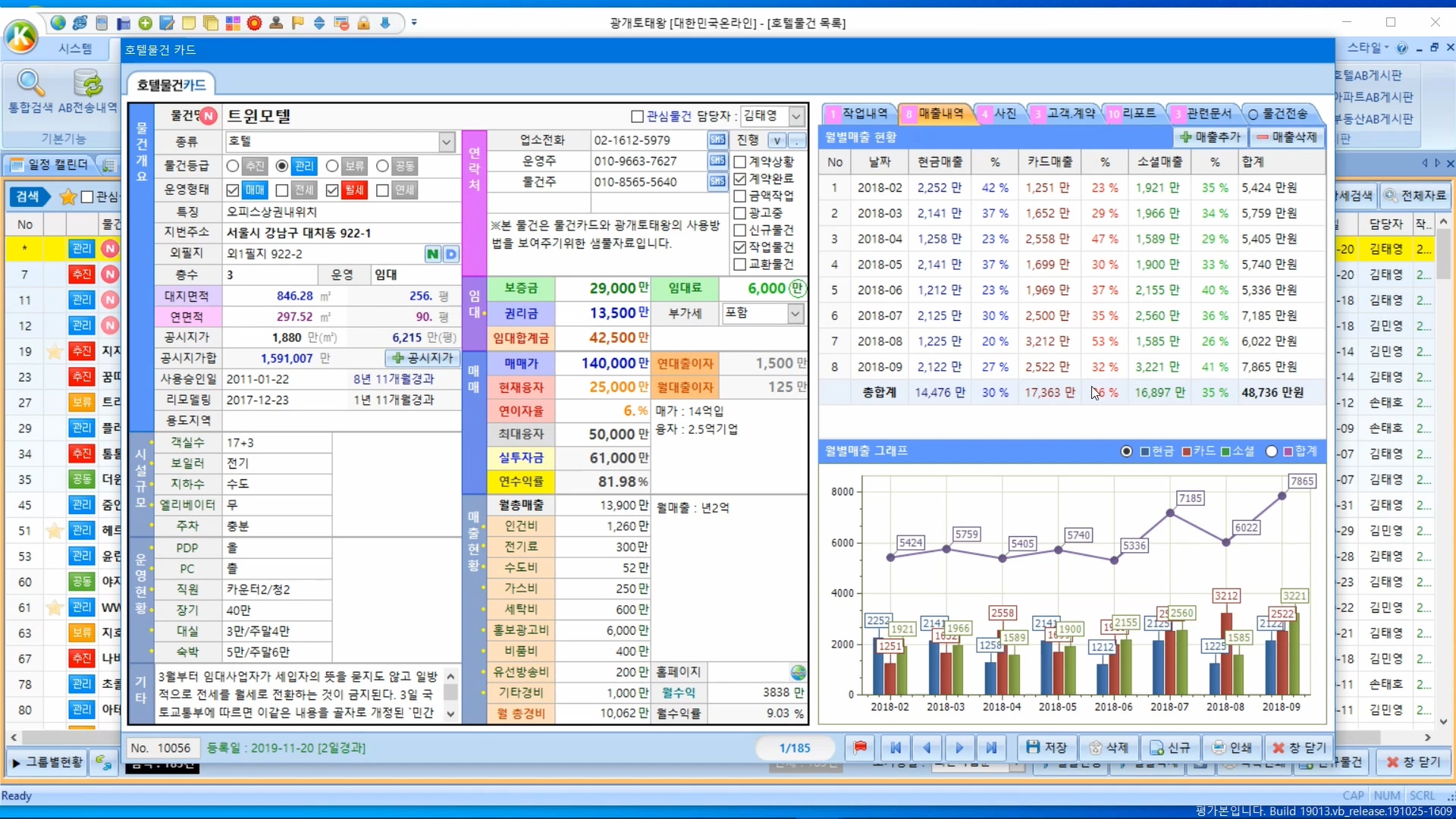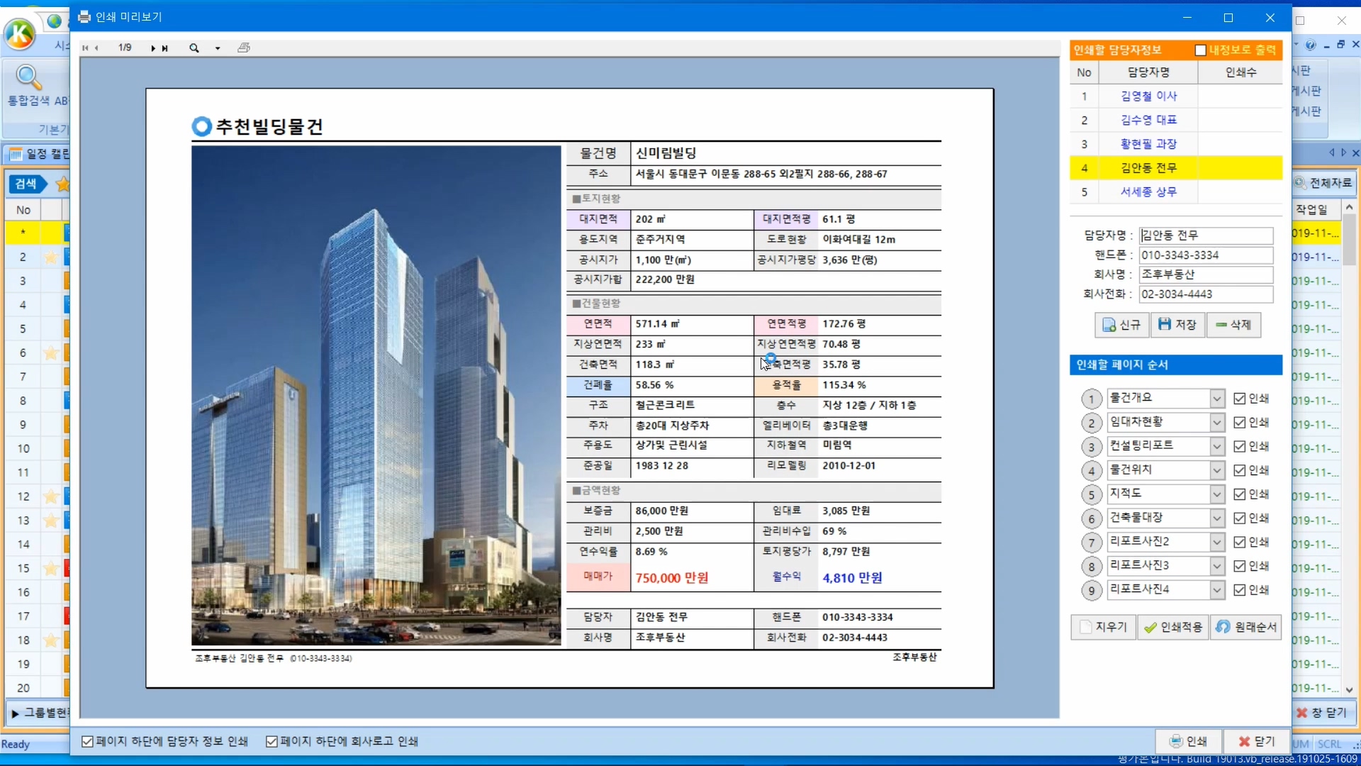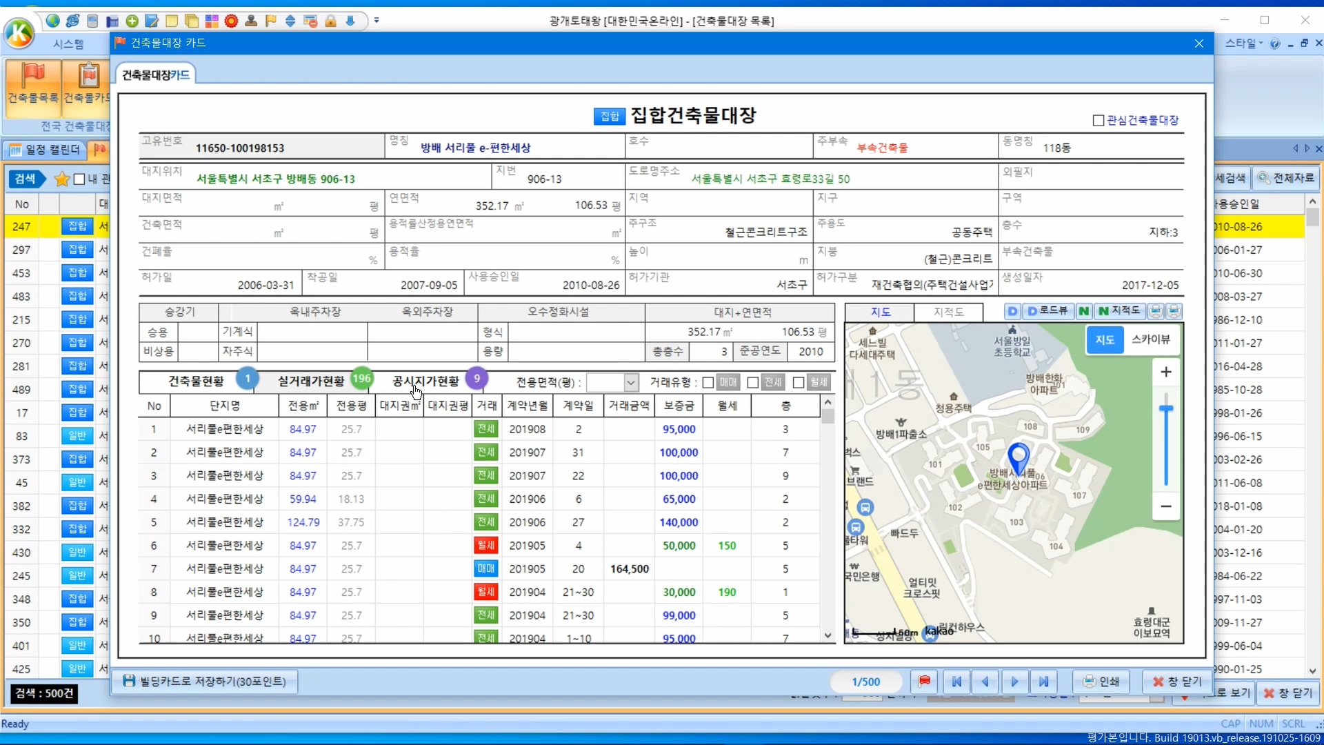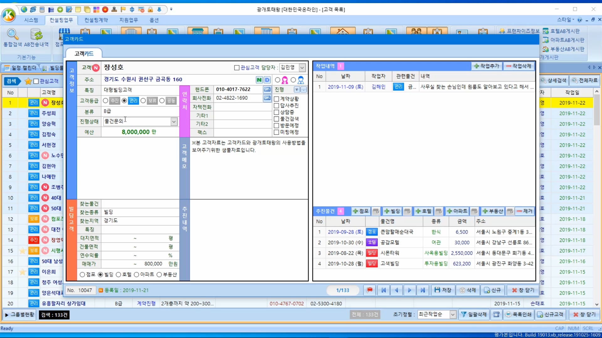 토지, 주택, 공장, 사무실등을 관리 할 수 있는 부동산물건 목록창