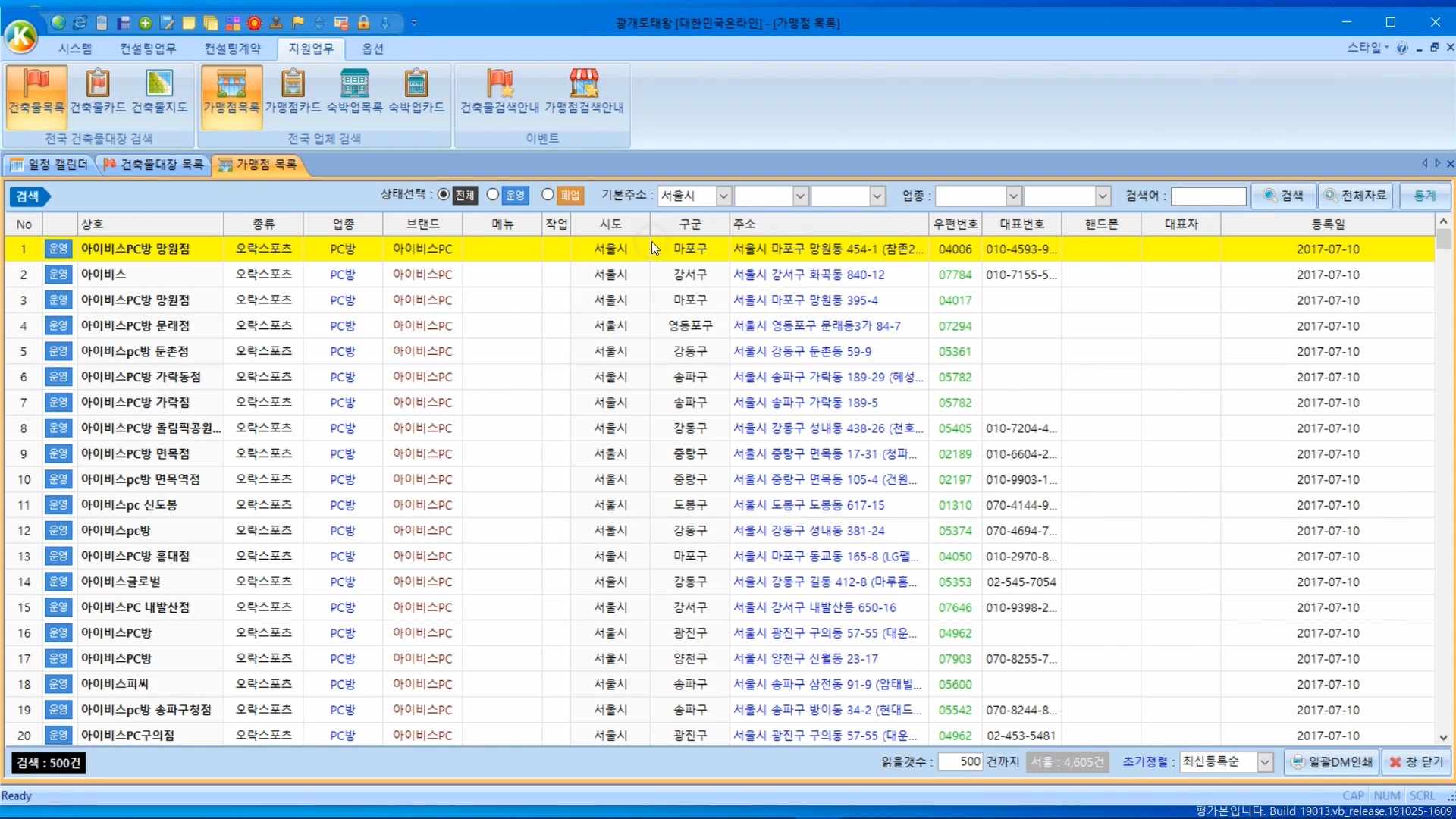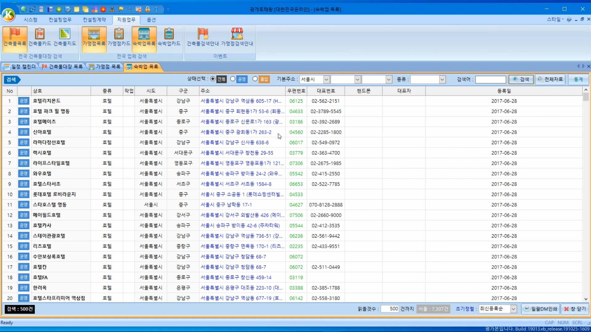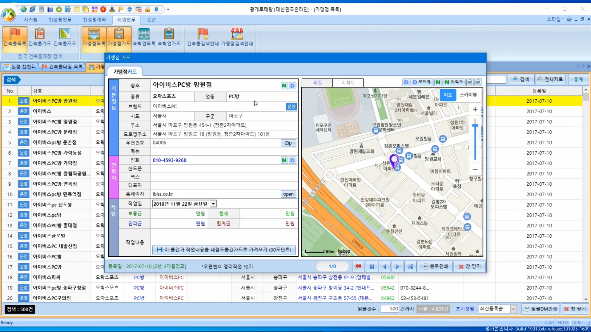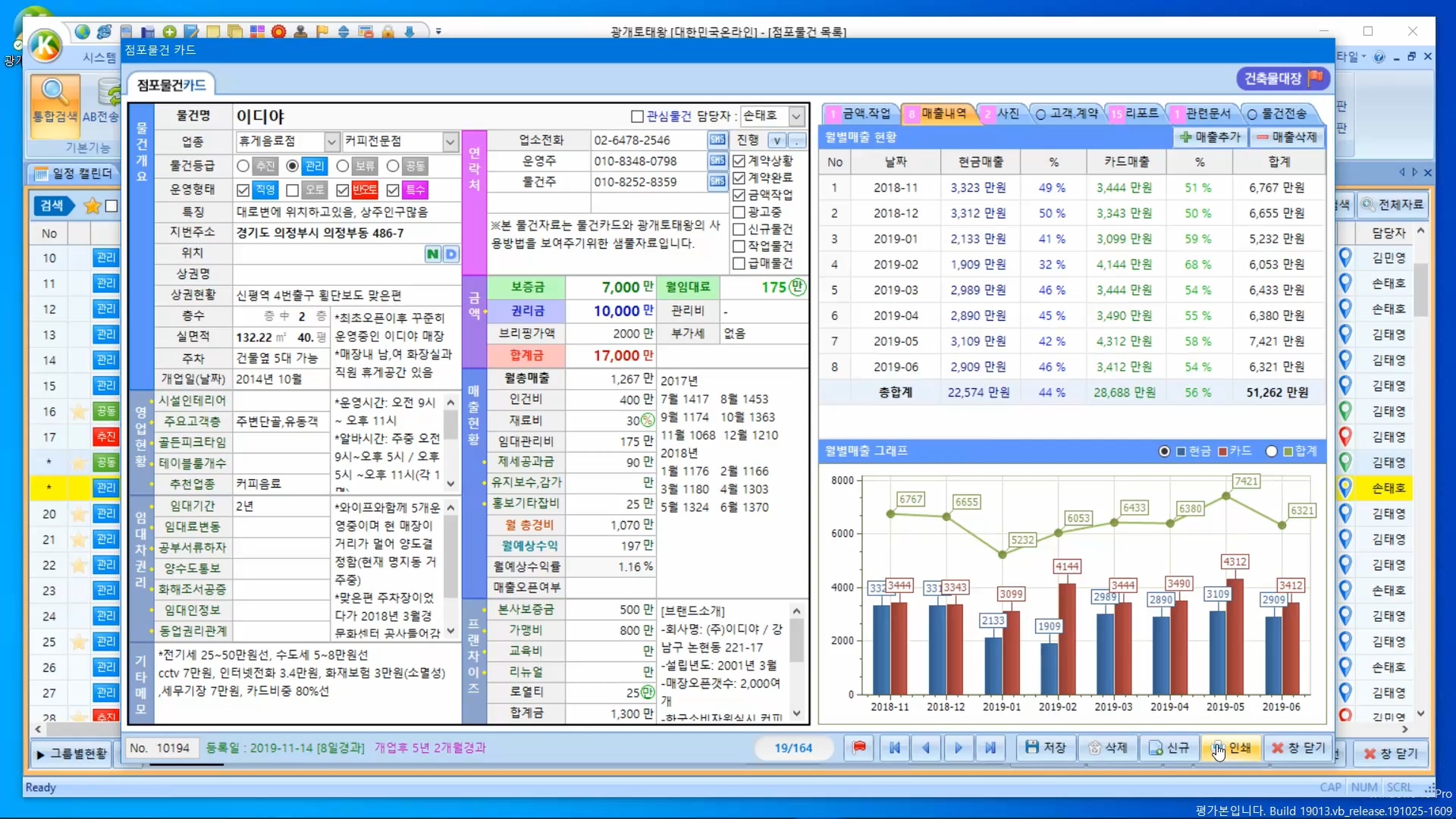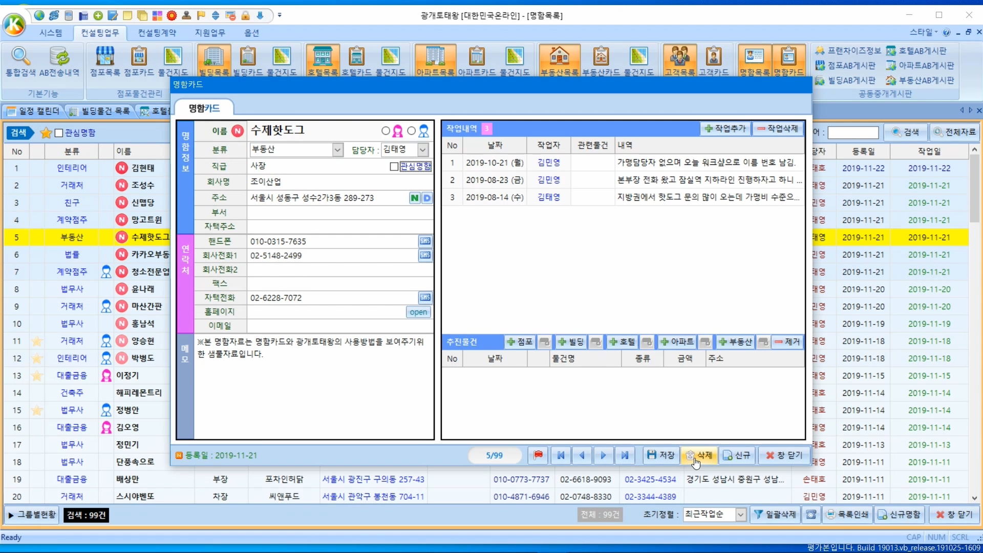 토지, 주택, 공장, 사무실등을 관리 할 수 있는 부동산물건 목록창