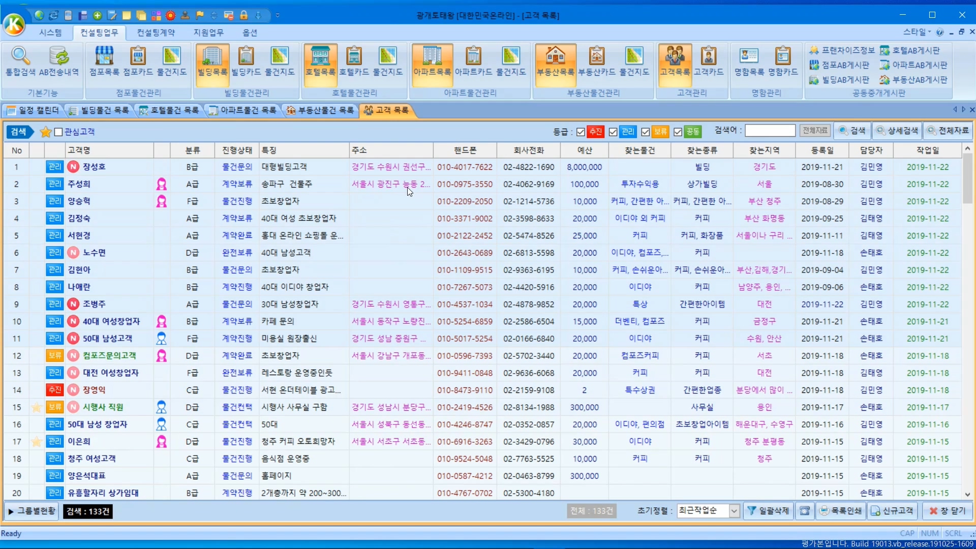 전화번호나 물건주이름, 번지등 일부의 자료만으로 검색을 할 수 있습니다. 고객인지 물건이였는지 통합검색을 해보시면 어떤 자료인지 보이게 됩니다.