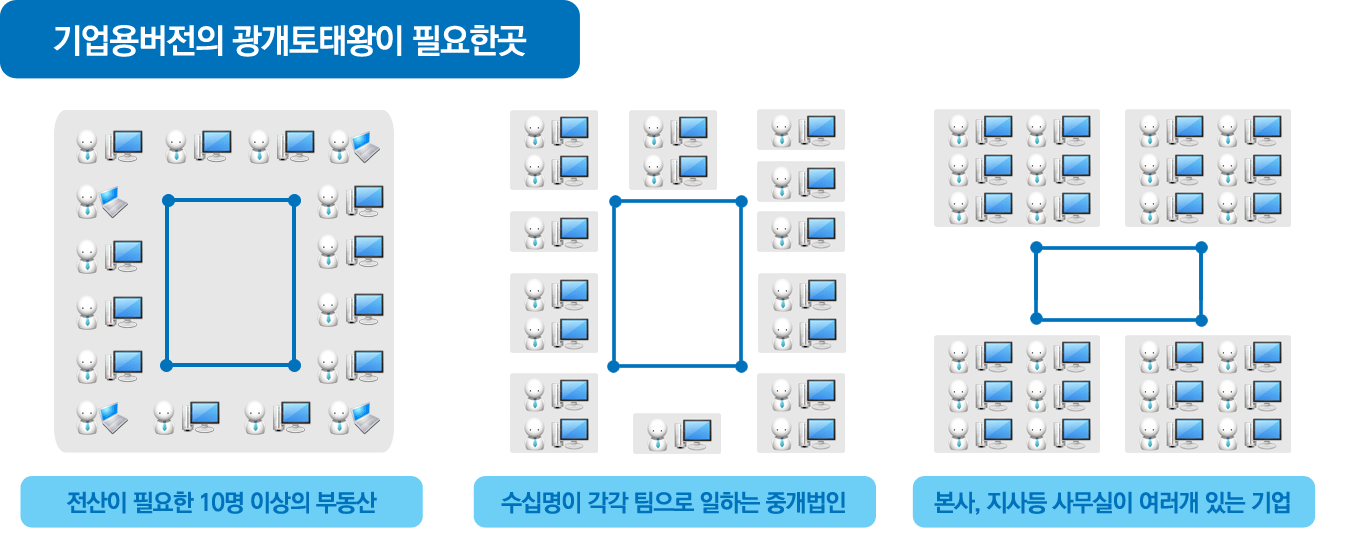 기업용버전은 10명이상의 부동산회사에서 광개토태왕을 사용하는 버전입니다.