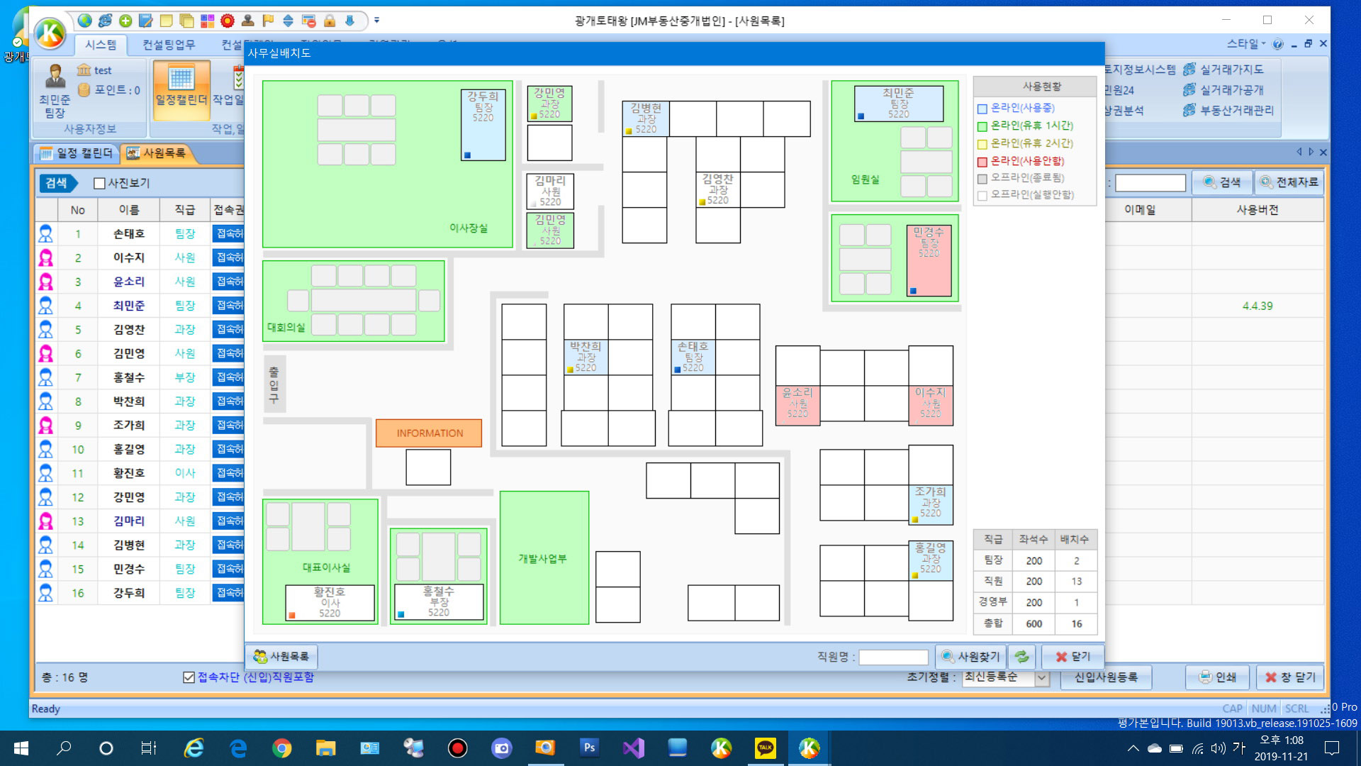 기업용버전의 사무실배치도